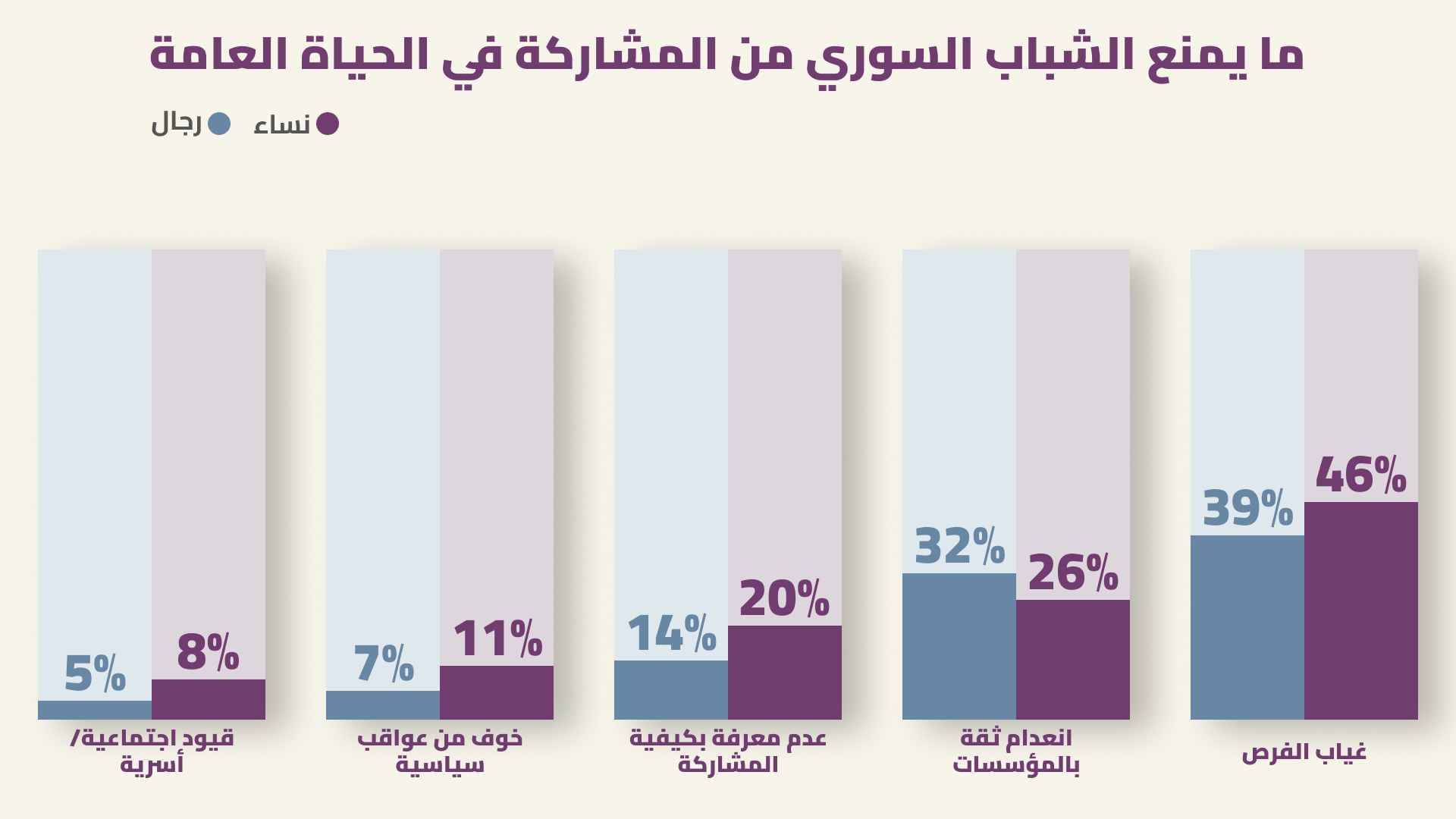التحديات الرئيسية التي تواجه الشباب السوري في حياتهم اليومية وعوائق انخراطهم في الحياة العامة-