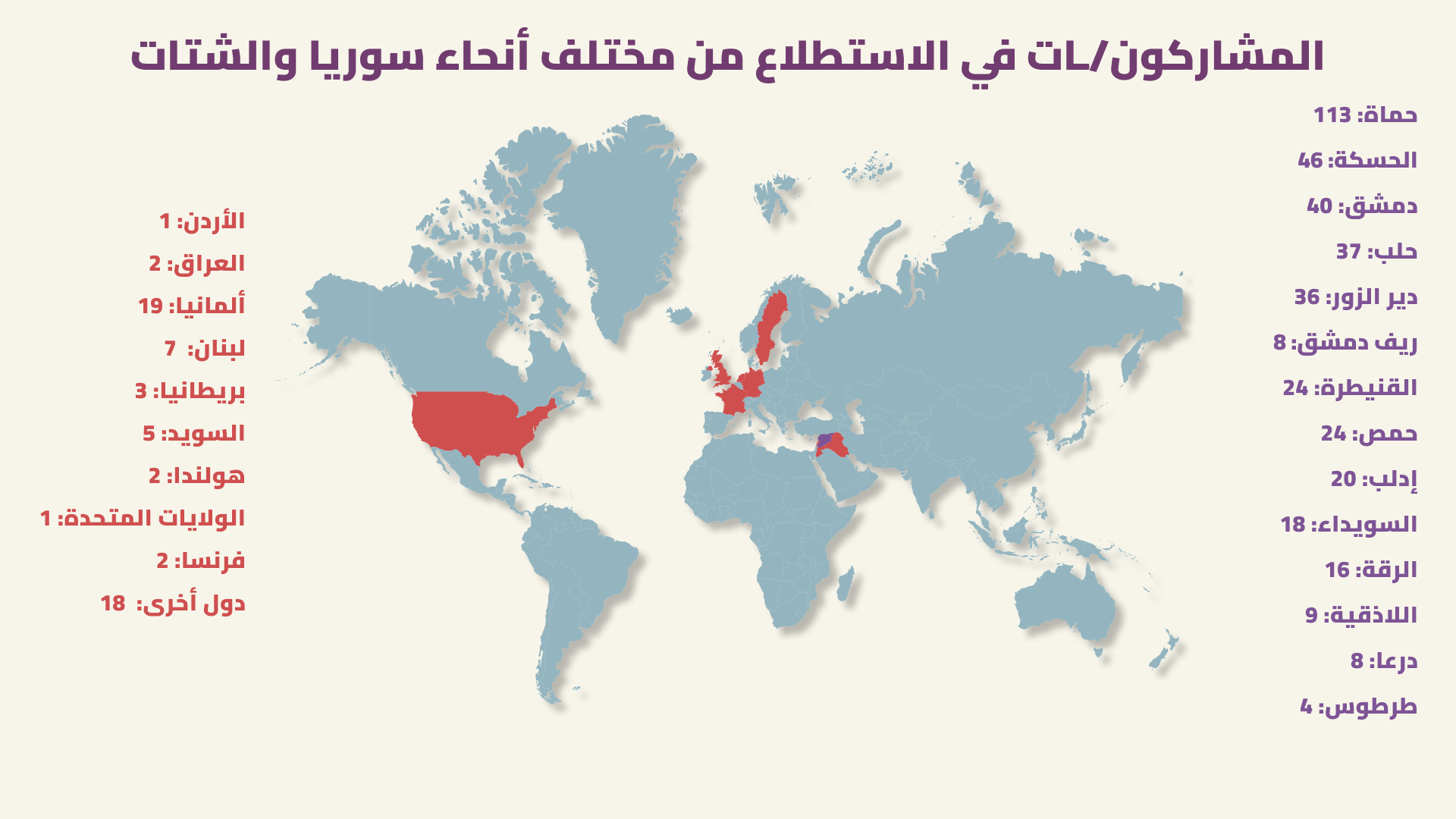 502 مشاركاً ومشاركة في الاستطلاع عبر الإنترنت (من 14 محافظة ومجتمعات الشتات)