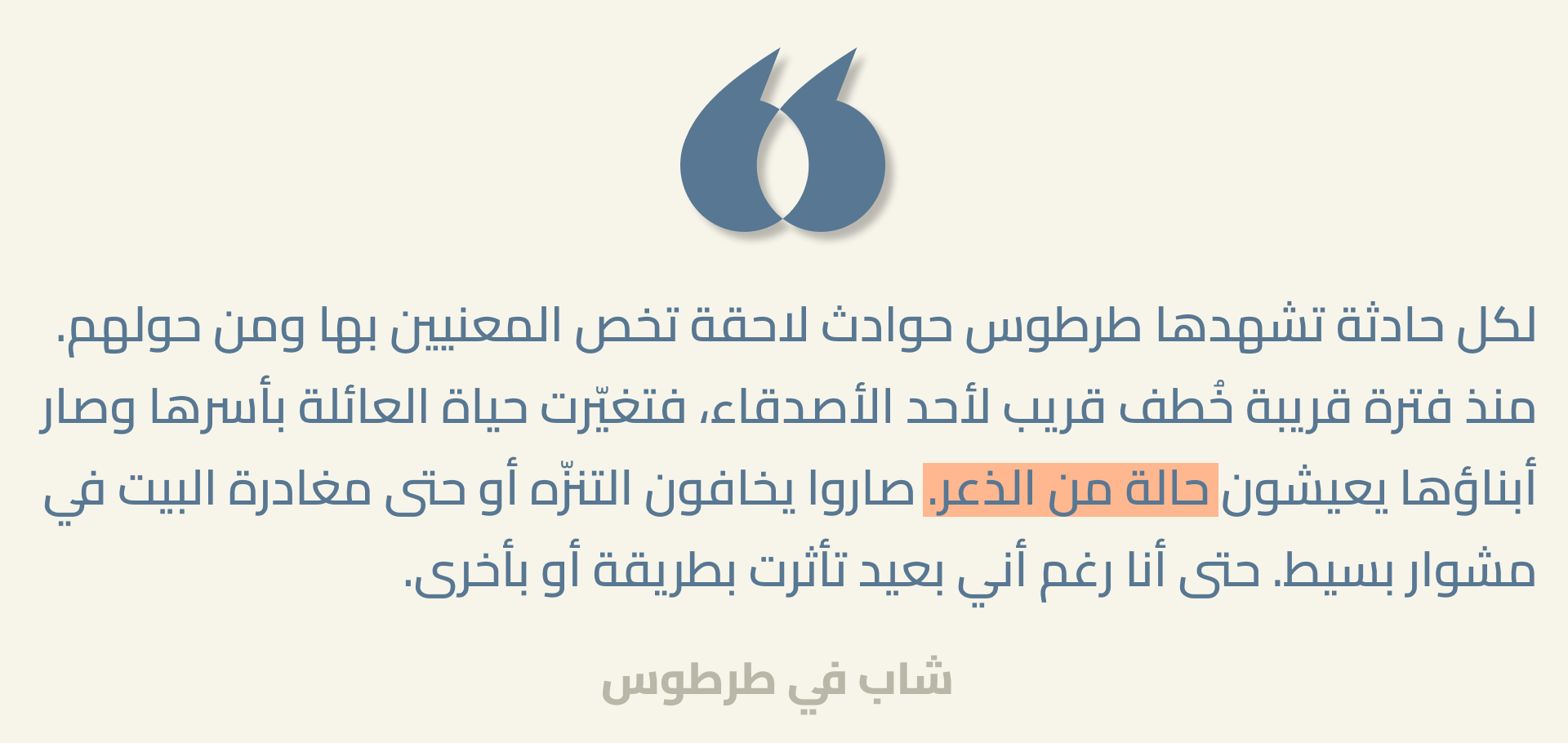 يواجه الشباب في مناطق مثل طرطوس، إحدى المناطق الساحلية التي اجتاحتها موجة عنف في آذار 2025، مزيجاً معقداً من المخاوف الأمنية، الأمر الذي فاقمته حوادث الخطف المستمرة وحالة اللايقين المتعلقة بأفضل سُبُل التعامل مع السلطات الانتقالية.